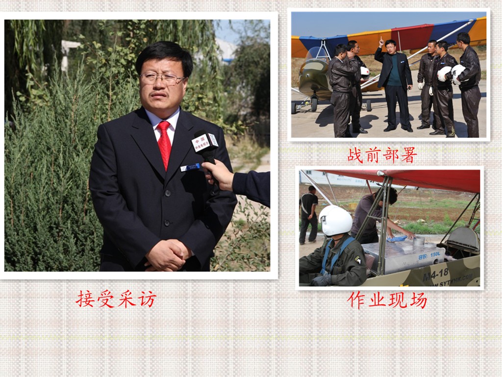 在祖國版圖的北方,茫茫的科爾沁沙地上活躍著一支以下崗職工創(chuàng)建的充滿傳奇色彩的隊伍--通遼市神鷹通用航空有限公司,他是全國第一家以超輕型飛機注冊的中國通用航空企業(yè),同時也是全國第一家集飛機播種、空中施肥、空中噴灑植物調(diào)節(jié)劑、空中除草、防治農(nóng)林牧業(yè)病蟲害、草原滅鼠、防治衛(wèi)生害蟲、航空護(hù)林、空中拍照、私用飛行駕駛執(zhí)照培訓(xùn)、航空運動訓(xùn)練飛行、航空運動表演飛行、個人娛樂飛行為主營業(yè)務(wù)的綜合性通用航空企業(yè)。現(xiàn)有超輕型飛機30余架,號稱中國私人第一飛行機群,從業(yè)人員70余人的專業(yè)進(jìn)行農(nóng)林牧業(yè)作業(yè)的社會福利型團(tuán)隊,多年來在防治農(nóng)林牧業(yè)病蟲害工作中默默無聞的為改善祖國生態(tài)環(huán)境做著不懈的努力,截止2010年9月1日,在我國山東省、河北省、遼寧省、吉林省、內(nèi)蒙古自治區(qū)共進(jìn)行飛機防治農(nóng)林牧業(yè)病蟲害和飛機播種2500萬畝,積極參與了“綠色奧運環(huán)保飛行”、國家項目“京津唐風(fēng)沙源治理工程”、“遼寧省荒山治理工程”、“內(nèi)蒙古荒沙荒山治理工程”等多項國家“十一.五”期間重點工程項目,特別是2008年以后,在我國北方沿海地區(qū)美國白蛾泛濫,公司上下齊動員在蟲災(zāi)最嚴(yán)重的河北省、山東省連續(xù)三年作業(yè),為抑制美國白蛾在我國大面積泛濫做出不懈努力,得到當(dāng)?shù)卣陀嘘P(guān)單位的一致好評,2009--2010年內(nèi)蒙古自治區(qū)西部蝗蟲泛濫,大片農(nóng)田、草原頃刻間被吞噬,神鷹航空公司義不容辭,積極參加到與自然災(zāi)害作斗爭的現(xiàn)場,以一絲不茍、認(rèn)真負(fù)責(zé)的精神,在自然環(huán)境極其艱苦的條件下很好的完成任務(wù),許下了“蝗蟲不滅不回家”的豪言壯語。得到有關(guān)部門和廣大群眾的一致好評。