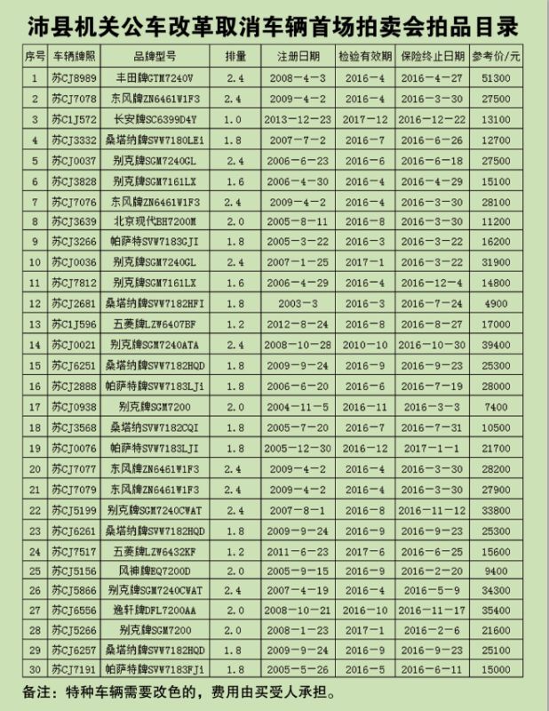 沛縣機(jī)關(guān)公車改革取消車輛拍賣會(huì)拍品目錄