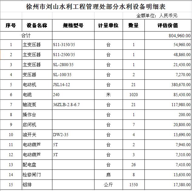 關(guān)注微信公眾號(hào)我公司受委托,定于2018年7月19日上午10時(shí)在徐州中山南路55號(hào)三樓本公司拍賣廳拍賣:徐州市劉山水利工程管理處部分水利設(shè)備。