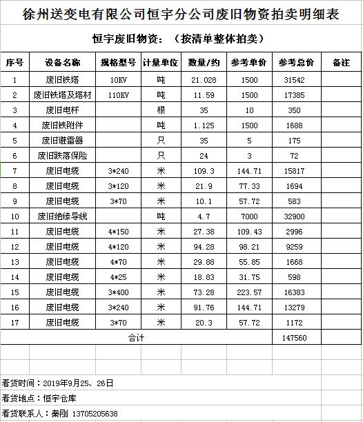 關(guān)注微信公眾號受委托,我公司將通過中國拍賣行業(yè)協(xié)會網(wǎng)絡(luò)拍賣平臺以網(wǎng)絡(luò)競價的方式公開拍賣廢舊電力物資一批,主要包括:電纜、導(dǎo)線、廢舊鋼材、鋼芯鋁絞線、金具、雜品、機(jī)具、空調(diào)、辦公設(shè)備等。