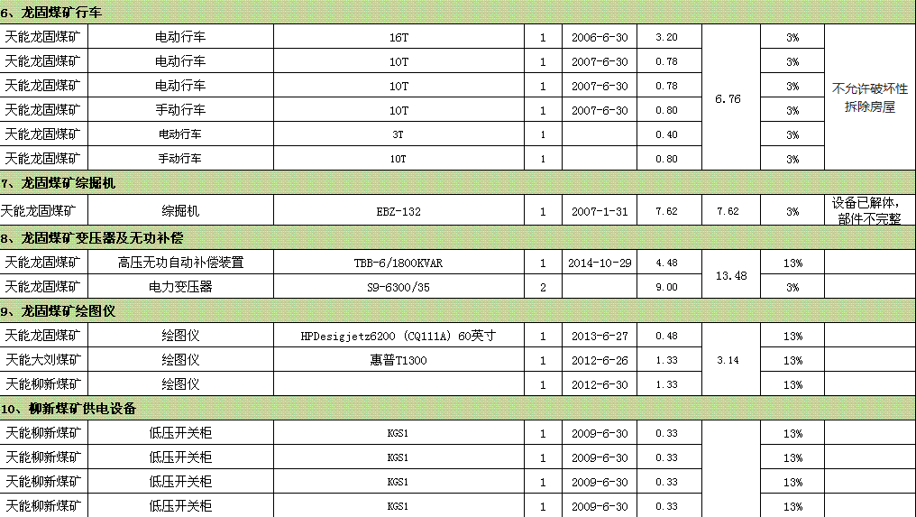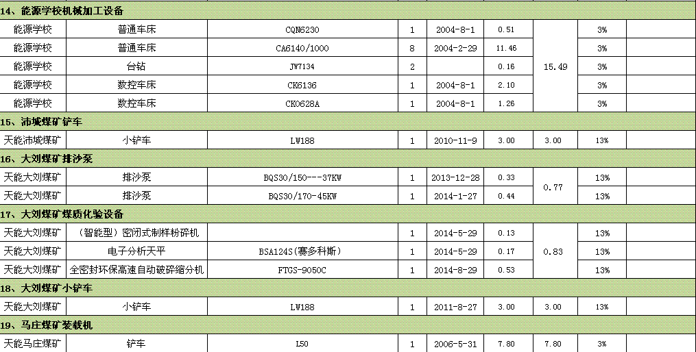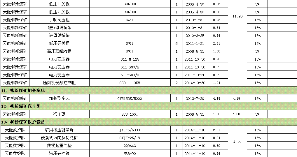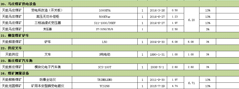 裝載機、鉆床、車床、提升機、壓風機、行車、綜掘機、變壓器、開關(guān)柜、鏟車汽車衡、測量設(shè)備等。