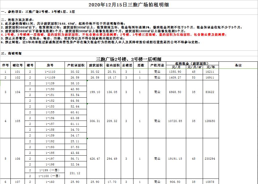 關(guān)注微信公眾號(hào)我公司受委托,定于2020年12月15日10時(shí)在徐州市中山南路55號(hào)三樓本公司拍賣廳公開拍租:新盛集團(tuán)位于三胞廣場(chǎng)商鋪及辦公房一批,面積分別為數(shù)十至數(shù)百平米不等,均為閑置。租期3-5年。禁止從事危險(xiǎn)品、有污染及擾民的行業(yè)經(jīng)營(yíng)。