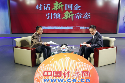 中航通飛華北飛機(jī)公司董事長,黨委書記張樞瑋做客《中經(jīng)在線訪談特別節(jié)目——對(duì)話新國企,引領(lǐng)新常態(tài)》。裴小閣/攝
