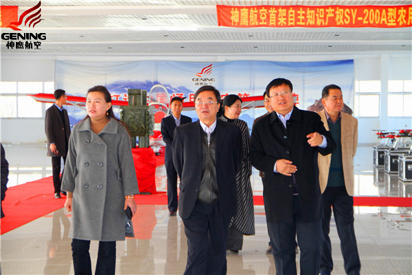 高海濤巡視員及工作組參觀了通遼市神鷹飛機制造在限公司。通遼市神鷹通用航空有限公司董事長邱志剛向檢查組詳細(xì)介紹了“SY-200”農(nóng)用飛機和植保無人機研發(fā)制造情況,匯報了公司當(dāng)前和今后的發(fā)展目標(biāo)和方向。期間,高海濤巡視員還親切地詢問了公司在發(fā)展建設(shè)中遇到的困難。