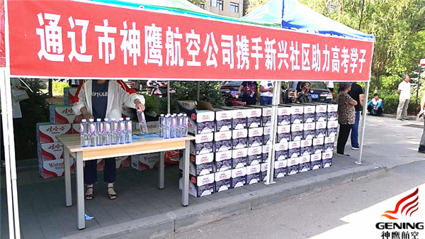 為了給莘莘學(xué)子們加油打氣,用實(shí)際行動(dòng)表達(dá)對考生和家長們的關(guān)切之情,6月7日一大早,通遼市神鷹通用航空有限公司攜手新興社區(qū)開展的以“護(hù)航高考獻(xiàn)愛心”為主題的愛心送水活動(dòng)正式開始了,活動(dòng)地點(diǎn)設(shè)在了通遼一中和奈曼一中考點(diǎn)外,同時(shí)愛心送水點(diǎn)搭建了臨時(shí)帳篷,以方便家長們休息等待。
